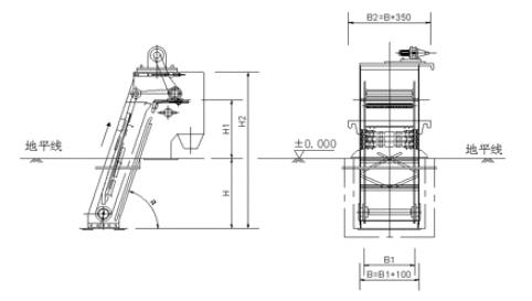 XY回轉(zhuǎn)式機(jī)械格柵是由耙齒裝配成一組回轉(zhuǎn)格柵鏈。在電機(jī)減速器的驅(qū)動(dòng)下經(jīng)鏈輪傳動(dòng)驅(qū)耙齒鏈,進(jìn)行回轉(zhuǎn)運(yùn)動(dòng)。耙齒鏈的下部浸沒(méi)于排水溝槽中,當(dāng)耙齒鏈運(yùn)轉(zhuǎn)到設(shè)備的上部時(shí),由于槽輪和彎軌的導(dǎo)向,使每組耙齒之間產(chǎn)生相對(duì)自清運(yùn)動(dòng),絕大部分固體物質(zhì)靠重力落下。另一部分則依靠清掃器的反向運(yùn)動(dòng)把粘在耙齒上的雜物清掃干凈。按水流方向耙齒鏈類(lèi)同于網(wǎng)柵,在耙齒鏈軸上裝配的耙齒間隙可以根據(jù)使用條件進(jìn)行選擇。當(dāng)耙齒把流體中的固態(tài)懸浮物分離后可以保證水流暢通流過(guò)。整個(gè)工作過(guò)程是連續(xù)的,也可以是間歇的。